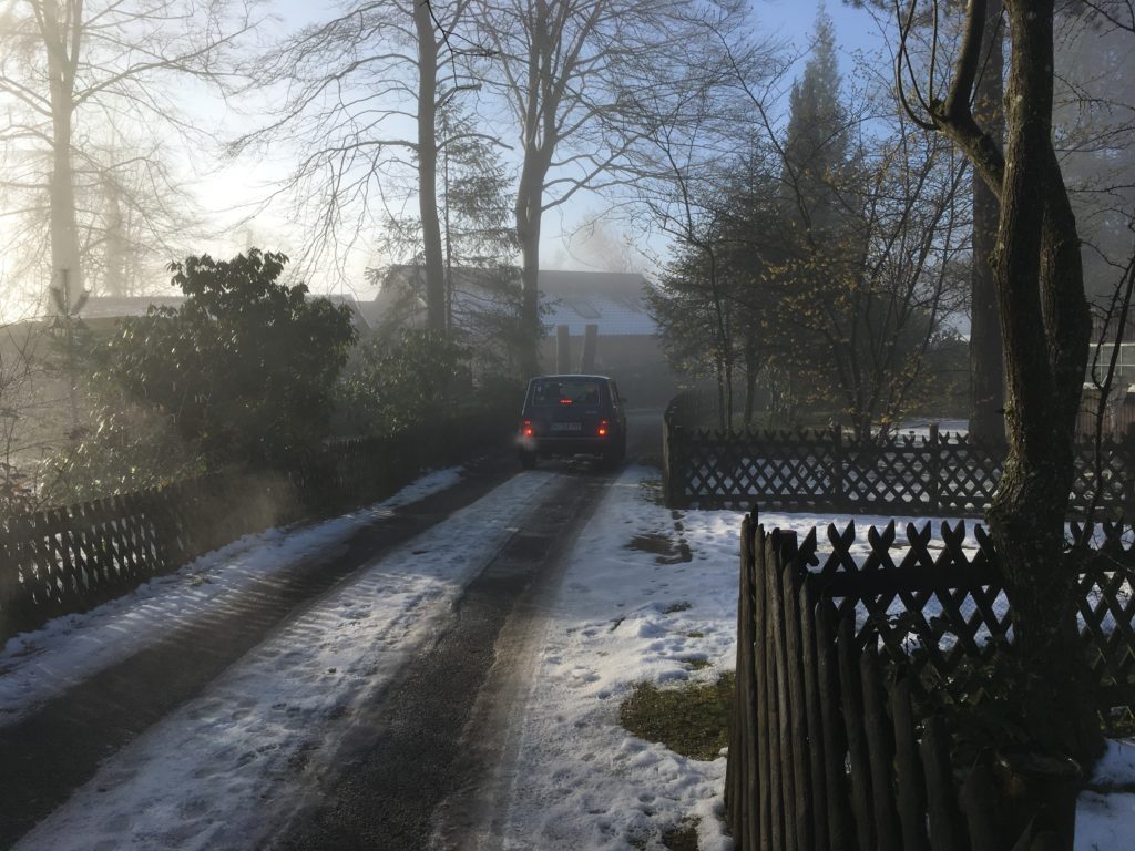 Wieder ein Tag weiter. Immer noch Regen, gestern war Sturm und Regen. Heute bloß Regen, ab und zu als Schneeregen. Trübe Aussichten. Gleich nach Irrel Dinge erledigen, dann in Folge nach Bitburg, nur Post abgeben. Dann nach Hause. Lock-Down irgendwie.
