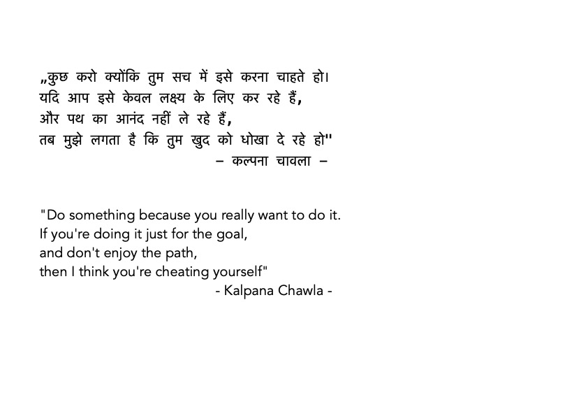 Bei längerem Denken und Setzen lassen wird einiges klarer, eine Persönlichkeit schält sich heraus. Kalpana Chawla. Diese Frau war Astronautin, aber vor allen Dingen Wissenschaftlerin. Von ihr stammt der folgende Satz: