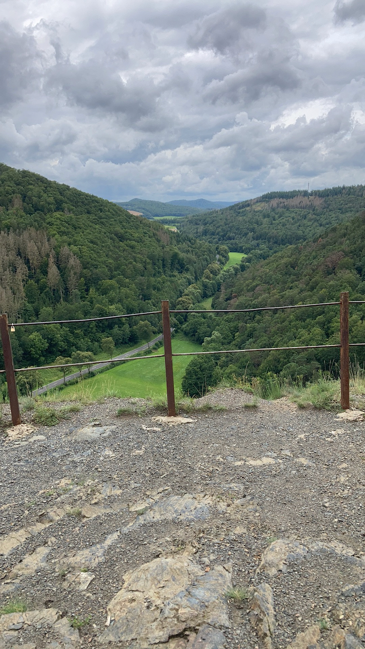 Erste Ziel war die „Gott sei Dank Hütte“ recht steiler und stetiger Anstieg, eine Kurve schließt sich der nächsten Kurve an, der Weg zieht sich. Dann ist man da wo zwei Berge aneinander gewachsen sind und dort ist die Hütte. Nach einer Rast geht es weiter mit Ziel Bilsteinklippen. Ein Naturdenkmal, weil dort prähistorische Pflanzenarten irgendwie überlebt haben und dort heimisch sind. Der Ausblick von oben ist genial. Weiter gehts um den Berg Bilstein herum hinunter nach Altwildungen, ständig bergab und es zieht sich. Unten im Tal der „Wilde“ dann die Entscheidung, unten im Tal bleiben und über Reitzenhagen zurück oder bergan nach Bad Wildungen krackseln und von dort zurück.